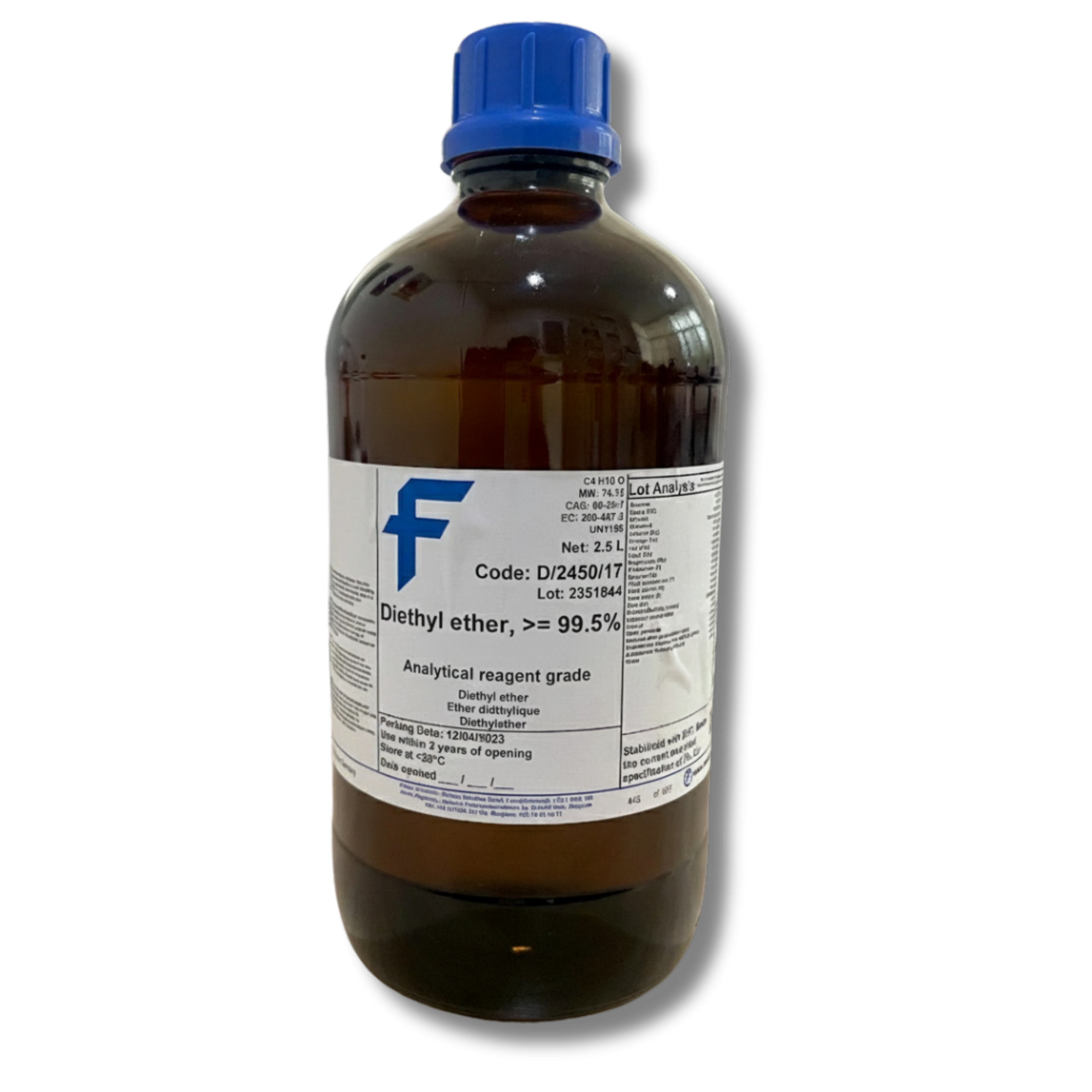 Melting Point -116°C CAS 60-29-7 Color Colorless Boiling Point 34.6°C Quantity 2.5 L Packaging Amber Glass Bottle Physical Form Liquid Molecular Formula C4H10O MDL Number MFCD00011646 Vapor Pressure 587mbar at 20°C