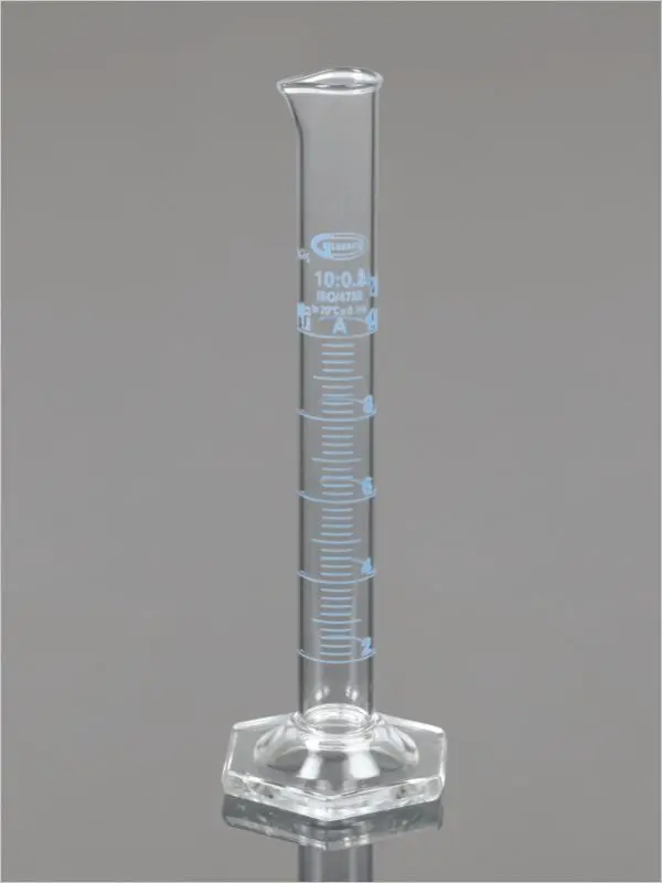 MEASURING CYLINDER, HEX BASE, WITH SPOUT, AS PER DIN EN ISO STANDARD, CLASS A, WITH BATCH CERTIFICATE, CAPACITY 100ML
